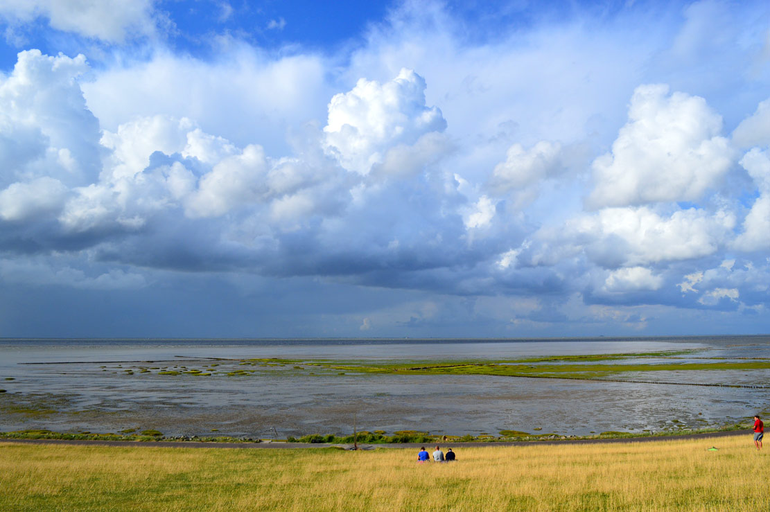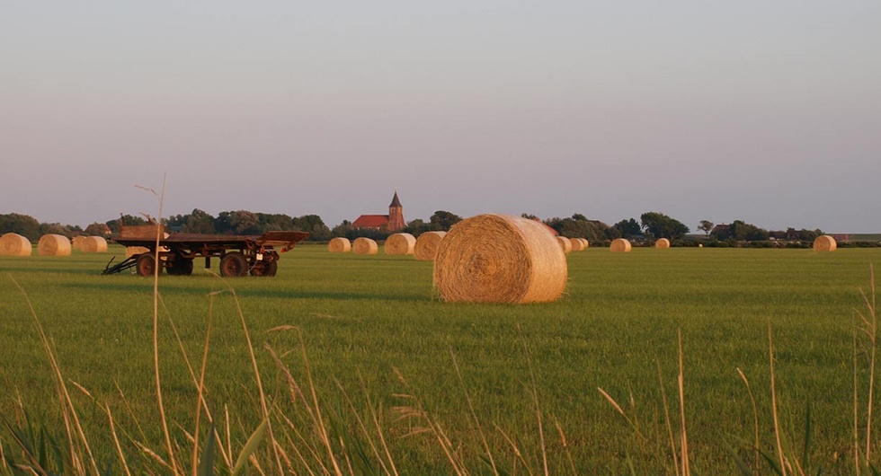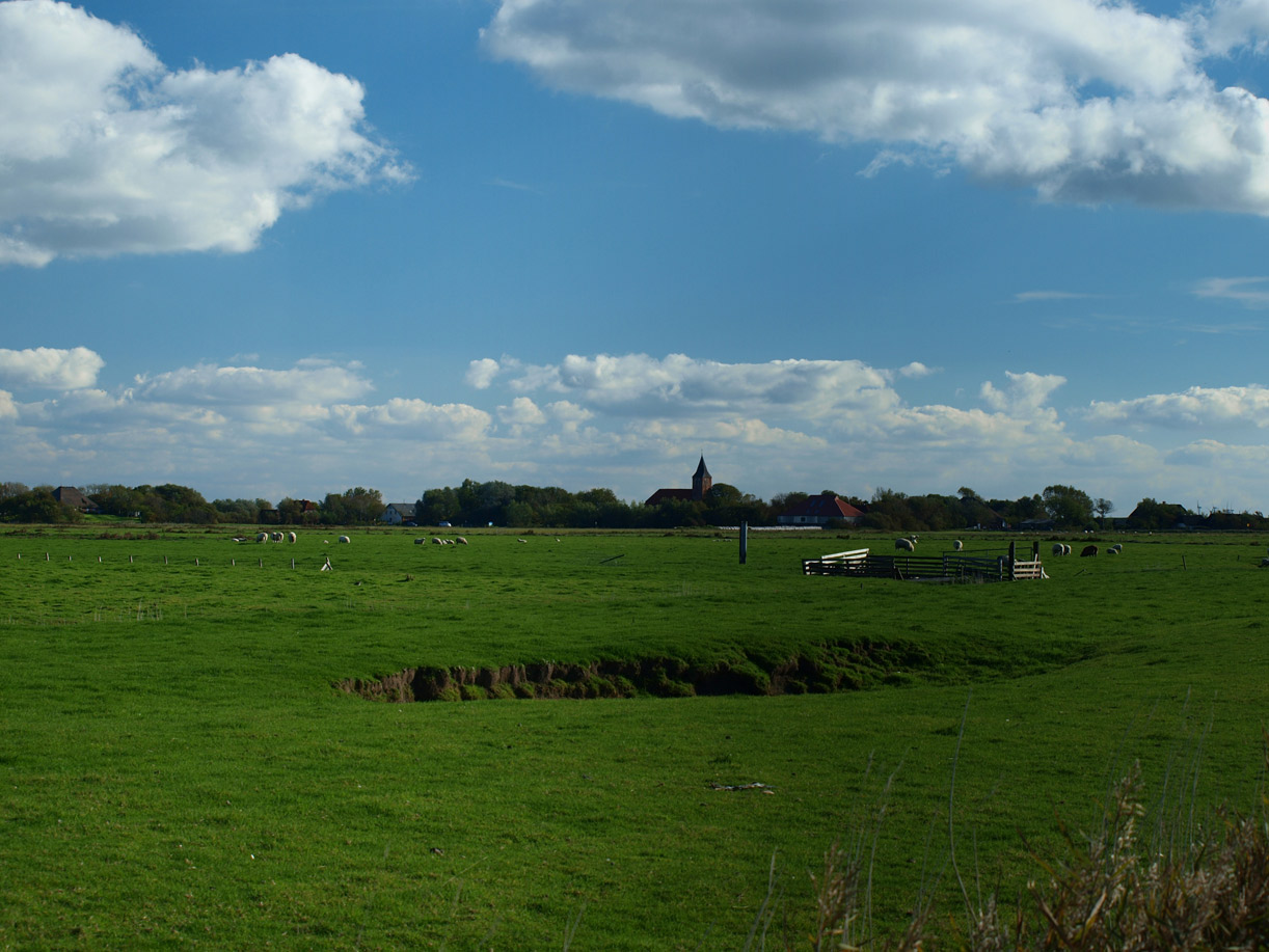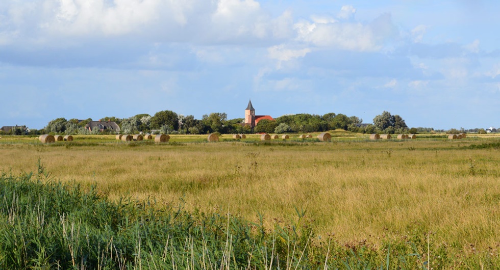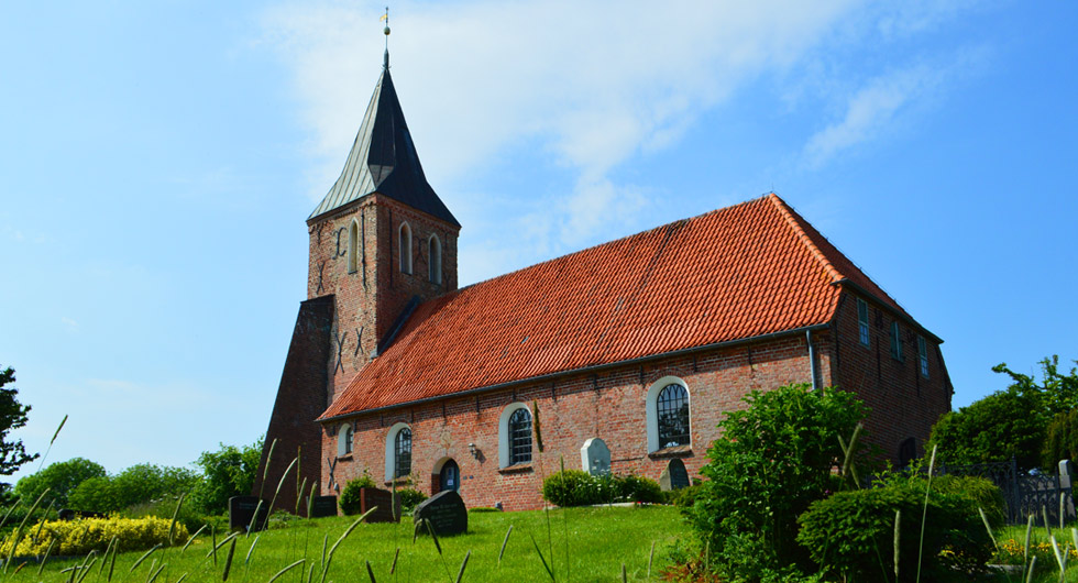 Von Weitem erblickt man schon den Kirchturm von Westerhever, der übrigens der älteste auf der Halbinsel Eiderstedt ist und aus dem Jahr 1370 datiert. Das Kirchenschiff wurde 1804 nach dem Abriss des alten Kirchenschiffs erbaut und beherbergt unter anderem den einzigen romanischen Taufstein Eiderstedts aus dem 12. Jahrhundert.